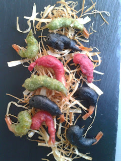 Utilizaremos harina de repostería y agua con gas , o cerveza y sal , hacer una masa espesa que al bañar las gambas este cubierta